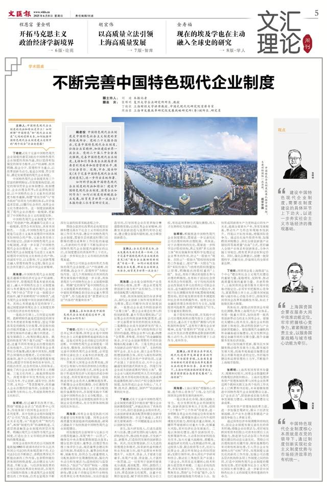 丁晓钦:《关于完善中国特色现代企业制度的意见》提出中国特色现代企业制度的具体内涵,即以坚持和加强党的领导为根本,以产权清晰、权责明确、政企分开、管理科学为重点,以改革创新为动力,是适合国情、符合实际、满足发展需要的现代企业制度。