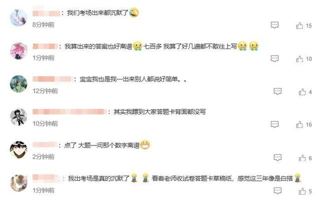 有考生表示,“一卷难到想笑”“考场出来都沉默了”。