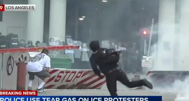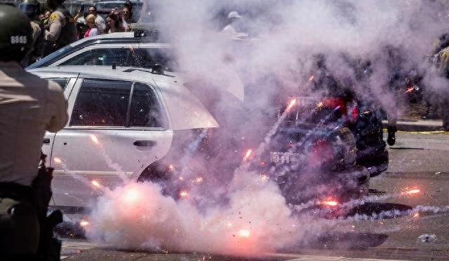 6月6日,在距离洛杉矶市政府大楼大约3公里的一场突击行动中,抗议群众向执法人员丢掷鸡蛋并高声辱骂,还追逐美国移民和海关执法局的车队,执法人员则投掷闪光弹来驱散人群。