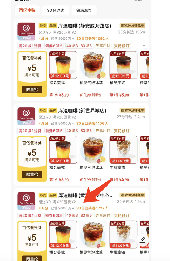 外卖平台补贴战,咖啡低至1元起
