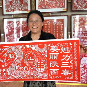 王亚玲是铜川市非遗剪纸市级传承人,2024年,她的剪纸作品《全面推进美丽中国建设》在陕西省生态文化创作大赛中获得视觉类美术作品三等奖。