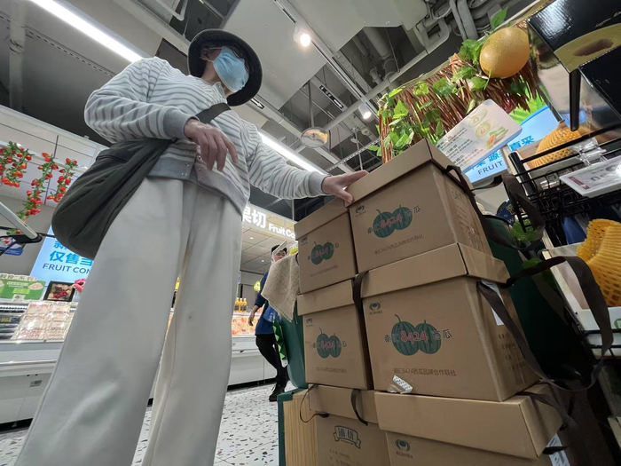 “跟着维度吃水果,西瓜实际一年四季有售。但每年5月份至8月,是西瓜的高产季,各类品种的西瓜纷纷亮相。在西郊国际,高峰期单日西瓜销售量能达到约2000吨。南汇8424、三林崩瓜、金山小皇冠等沪产西瓜热销的同时,待到7、8月份,陕西、甘肃、宁夏、东北、新疆等地的西瓜也会陆续上市并热销。而到冬季则多为海南西瓜。”西郊国际果品部经理助理江浩透露。