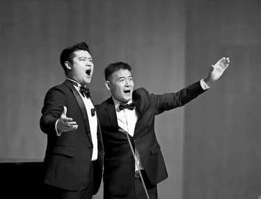 管毓松(右)和赵恺在舞台上演唱。