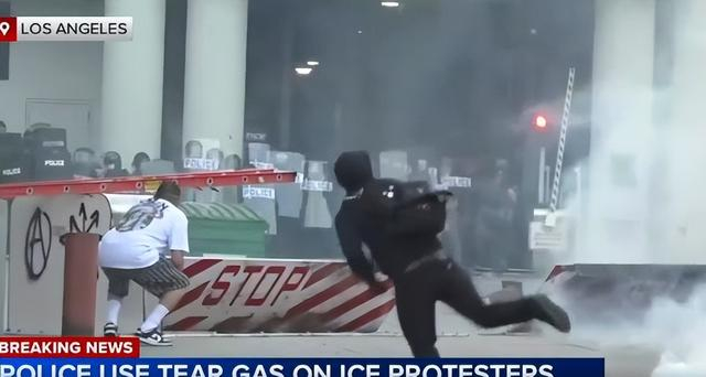 6月6日,在距离洛杉矶市政府大楼大约3公里的一场突击行动中,抗议群众向执法人员丢掷鸡蛋并高声辱骂,还追逐美国移民和海关执法局的车队,执法人员则投掷闪光弹来驱散人群。
