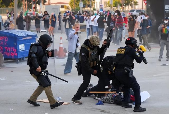 观察者网消息,美国移民与海关执法局(ICE)等机构6月6日起对非法移民采取强硬突袭搜查行动后,抗议者连续两天在洛杉矶举行示威,据称超过1000人包围并袭击了一座联邦机构所在大楼,并与警方爆发冲突,截至7日已有45人被捕。
