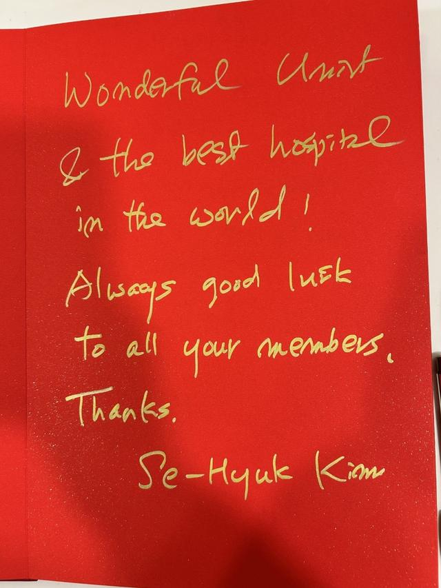 亚洲神经肿瘤学会主席的亲笔表扬信