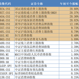与之对应的,代表消费整体的恒生消费指数涨幅相对较弱,内地的消费相关指数表现更是一般。