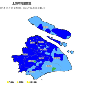 上海气象部门介绍,受梅雨带影响,上海昨夜到今天(6月8日)普遍出现大到暴雨,并伴有雷电、短时强降水。上午暴雨、雷电预警高挂,多区还发布了大风预警。统计7日20时~16时雨量显示,嘉定区马路镇98.4毫米全市最大。另外今天白天风力也比较大,崇明、宝山和浦东等地出现7级的极大阵风。雨水影响下,今天白天最高气温出现在早晨,其中徐家汇站白天最高24.1℃,体感偏潮湿但并不闷热。