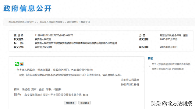 原文标题:农安县被征地农民基本养老保险缴费补贴实施办法