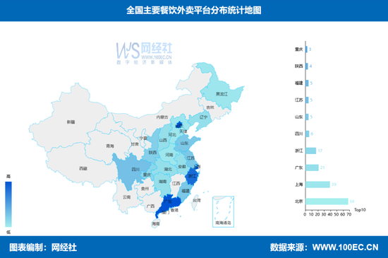 据网经社企业库收录显示,目前国内共有餐饮外卖平台168家,包括美团外卖、饿了么、大众点评、哗啦啦、宅家吃饭、居居外卖、123购、聚美味、佳乐外卖、点点送餐、98外卖、乐外卖、维小饭、随便点、美餐、饭乎等。其中,北京有68家、广东21家、浙江17家、四川6家、山东5家、江苏5家、福建5家、陕西4家、重庆3家。