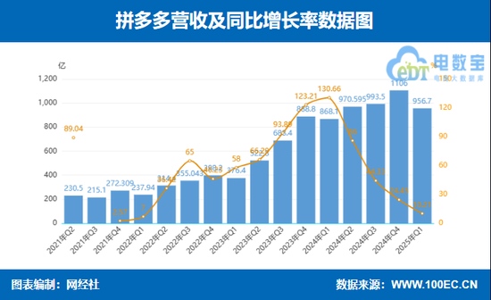拼多多2025年一季度财报折射出电商行业整体增速放缓背景下,拼多多面临的盈利压力。财报显示,拼多多一季度实现营收957亿元,同比增长10%。归属于拼多多普通股股东的净利润为147.418亿元;不按美国通用会计准则,归属于拼多多普通股股东的净利润为169.160亿元。