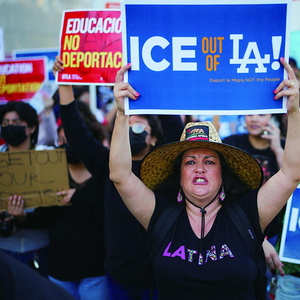 美国移民与海关执法局(ICE)等联邦机构执法人员6日搜捕非法移民,突袭洛杉矶市至少7处地点,包括购物中心和工厂,逮捕44人。行动中,执法人员遭到当地社区居民围堵,不断发生肢体冲突。当晚,大约500名抗议者聚集在洛杉矶市中心,举着“ICE滚出洛杉矶”等标语,试图冲击一处拘留所,与前来维持秩序的洛杉矶当地警察发生冲突。警方使用警棍、催泪弹和橡皮子弹驱散抗议者,抗议者用砖头和石块还击。