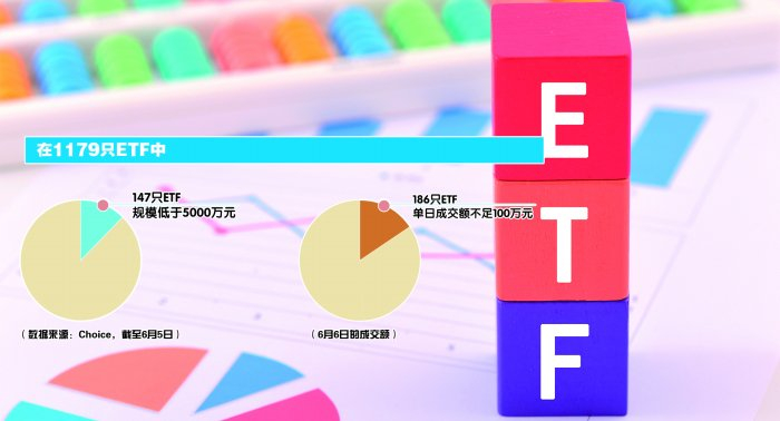 从整体来看,据Choice测算,截至6月5日,在1179只ETF中,147只ETF规模低于5000万元。其中,39只ETF规模不足2000万元,部分ETF规模甚至只有几百万元。