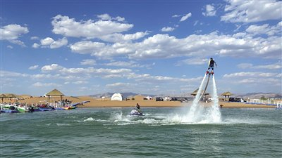 “乌海湖一半沙漠一半水,沙与水交融的景致给我留下了深刻印象。”来自香港的游客钟利珍说,在湖面泛舟的绝妙体验让她深受震撼。