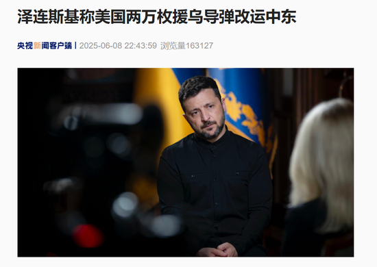 当地时间6月8日,乌克兰总统泽连斯基在接受美国广播公司采访时透露,美国已将原计划援助乌克兰的两万枚反“见证者”无人机导弹转运至中东地区。这一决定可能影响乌军应对俄军自杀式无人机的防御能力。