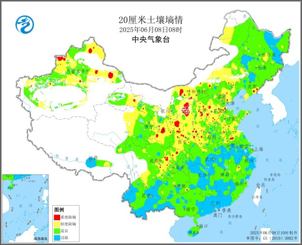 建议:东北强降雨区要提前疏通沟渠,避免深水淹苗或加重倒伏;大风过后应及时巡查田块,对轻微倒伏但根系未断的秧苗及时扶正,对严重倒伏或损伤死亡的秧苗立即补苗;内蒙古东南部和辽宁西南部缺墒区视墒情改善情况开展灌溉。北方冬麦区要抓有利天气加快麦收进度,已收地区适时造墒播种,同时做好防暑降温工作。南方降水偏多地区要及时清沟理渠、排涝降渍,确保大田作物和经济林果等正常生长,水产养殖区应加强巡塘,适时增氧换水;此外,应利用降水间歇做好水稻移栽和病虫害监防工作。