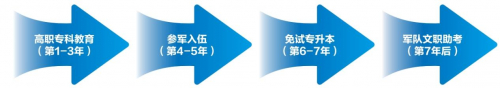 军队文职七年助考陪跑计划:依托湖南省退役军人就业创业服务促进会职教中心资源优势,采取“3年专科学习+2年参军入伍+2年免试升本”的培养模式,助力学生实现升学梦想。此外,学院联合军队相关部门开展军队文职岗位定向培养,通过系统化训练,提升学生报考竞争力,助力其迈向稳定且体面的职业生涯。