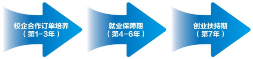 “零学费”订单就业七年创业陪跑计划:依托国家助学贷款政策,学生通过订单班实现“1.5年理论 + 1 年企业实践 + 0.5 年顶岗实习”培养,毕业后入职合作企业,工作满3年由企业代偿助学贷款,第7年提供创业启动资金与技术扶持,实现“就业 —还贷 — 创业”闭环。