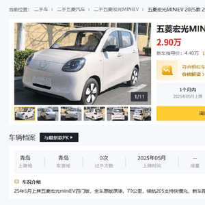 该款车型市场售价为4.48万元,而一辆行驶里程70公里、今年5月完成初次上牌的同款二手车售价降至2.9万元,比同款新车定价便宜1.58万元。