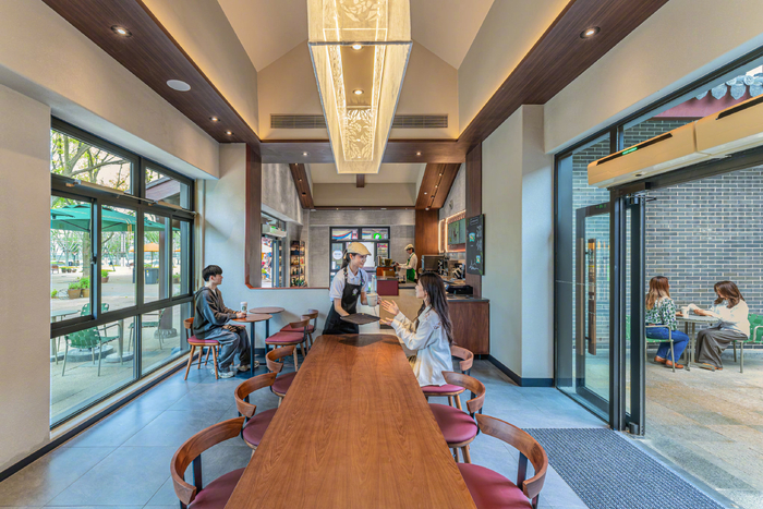 为了满足消费者的不同需求,星巴克在门店端也做出多项调整,改变了座椅形态和数量,分别设置休闲躺椅、卡座、共享长桌、吧台凳……独自小坐、朋友相聚、办公学习等消费者需求均能得到满足。此外,门店调整了灯光、音乐、家具组合,例如“将灯光色温提升至3000K”,从而创造更明亮舒适的空间环境。