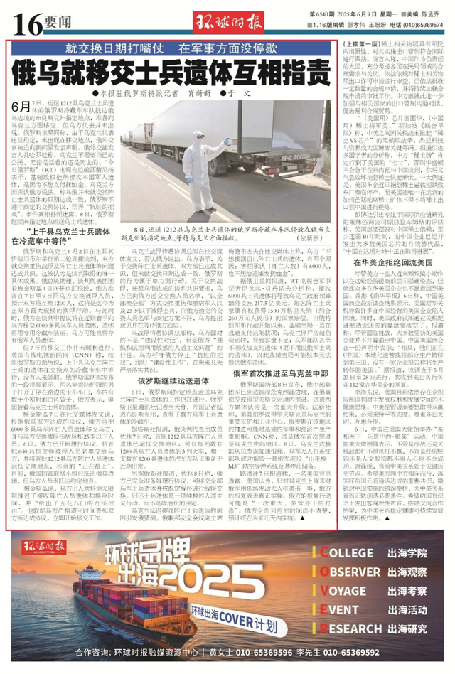 8日,俄罗斯向指定地点运送乌克兰阵亡士兵遗体的工作仍在进行。俄罗斯卫星通讯社记者当天称,外国记者抵达布良斯克州,查看了载有乌军士兵遗体的冷藏车。