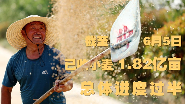 记者5日从农业农村部获悉,当前全国夏粮小麦大规模机收持续推进,截至6月5日,已收小麦1.82亿亩、总体进度过半。