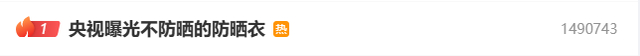 6月9日,话题“央视曝光不防晒的防晒衣”登上热搜第一。
