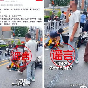 实际上,“骑手倒下/猝死/跳楼”等涉及人身安全的谣言多次出现。去年9月,一位上海的外卖小哥因打游戏太累在街头休息,竟被拍照造谣为“上海台风天,外卖小哥当街猝死”。一位骑手只是在阳台上坐着休息,就被拍照、造谣为“人已跳楼,没了”。