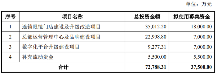 博士眼镜6月3日披露《向不特定对象发行可转换公司债券募集说明书(修订稿)》显示,公司本次发行可转换公司债券的募集资金总额不超过人民币37,500.00万元(含),扣除发行费用后的募集资金净额拟用于连锁眼镜门店建设及升级改造项目、总部运营管理中心及品牌建设项目、数字化平台升级建设项目、补充流动资金。