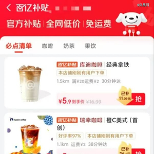 在京东秒送等平台上,凤凰网科技发现,库迪的位置处于“咖啡奶茶”品类的*位,同时价格也下探到了5.9元,有个人消费者称*时可下探至2.9元。而在北京以外的其他区域,普遍是3.9元,京东秒送就能将一杯生椰拿铁送到家,性价比不可谓不凶猛。