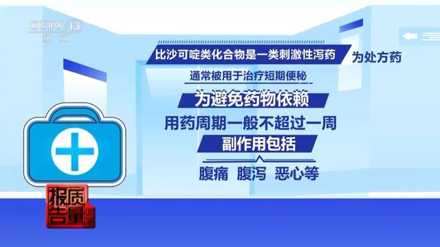 据了解比沙可啶类化合物是一类刺激性泻药,为处方药,通常被用于治疗短期便秘,为避免药物依赖,用药周期一般不超过一周。副作用包括腹痛、腹泻、恶心等。