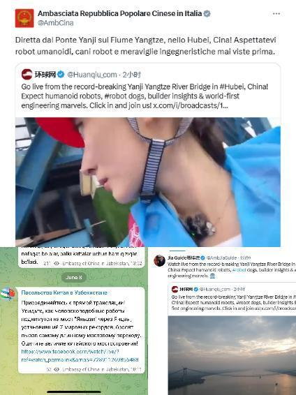 在海外,直播吸引“外交天团”点赞。中国驻英国大使馆、中国驻美国大使馆等16个海外社交媒体账号联动转播。更有多位来自埃及、巴基斯坦等地的网红点赞转发本次直播。在海外全平台触及人数近496万,海外实时在线观看人数合计超14.1万,其中X(原推特)单平台实时在线观看人数超13.3万,居X平台同时段全球媒体直播观看人数前列。