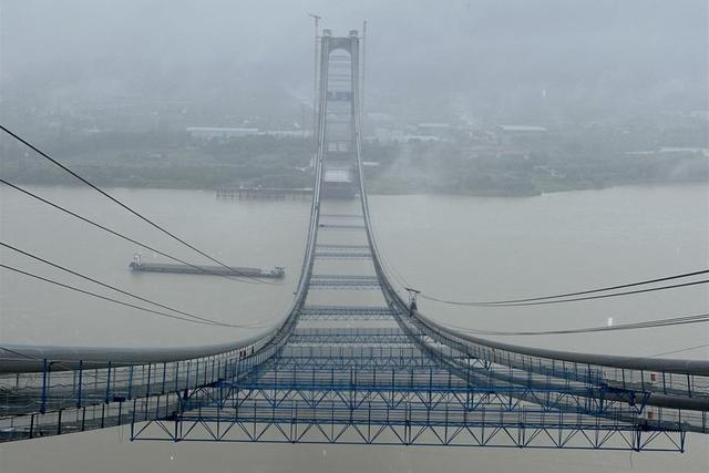 作为世界最大跨径四主缆悬索桥,燕矶长江大桥主跨达1860米,四根主缆总拉力达28万吨,相当于吊起6艘中型航母),工程建设创下7项世界之最。