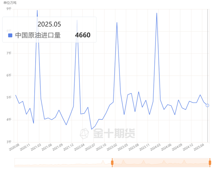 大宗商品分析师Sam Li和Chen Aizhu最新观点指出,海关总署数据显示,中国5月原油进口量为4660万吨,相当于1097万桶/日,较4月的4806万吨下降3%,较2024年5月下降0.78%。2025年1-5月累计进口原油2.2961亿吨(1110万桶/日),同比微增0.3%。
