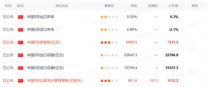 截至5月30日,铁矿石港口库存环比下降2.8%至1.33亿吨,创2024年2月以来最低水平,因进口减少。Mysteel分析师表示,部分船舶因五一假期提前清关,导致5月进口低于预期,而4月进口高于预期。2025年1-5月,中国铁矿石进口同比下降5.2%至4.8641亿吨。