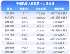 3)龙头汇聚提供龙头驱动动能:龙头股经营更稳定、客户基础更好、整合产业链能力更强,有大的发展空间。中证机器人指数指数成分股共计70只,包含各机器人行业龙头。前十大成份股占比50.38%,精准锚定机器人产业核心环节。