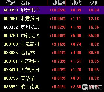 受此影响,今日A股军工板块全线爆发,个股中,旭光电子、利君股份、苏州龙杰、中航沈飞10cm涨停,天晟新材涨超9%。