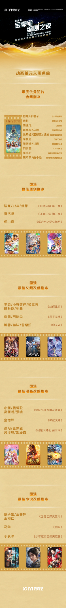 “金豪笔编剧之夜”是由爱奇艺率先发起的国内首个关注编剧行业生态的表彰活动,旨在鼓励和表彰优秀编剧人才,推动影视创作生态健康长效发展。本届“金豪笔编剧之夜”由中国文联电影艺术中心、中国动画学会、中广联合会电视剧编剧委员会指导,爱奇艺主办。来自中广联合会电视剧编剧委员会、导演委员会的资深创作者,以及编剧、导演、演员代表、学界专家代表、业界代表,共同组成专业评委阵容,评选出近一年来在电影、动画、剧集三个领域表现突出的编剧及作品。