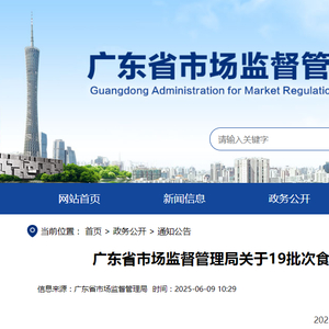 广东省市场监督管理局关于19批次食品不合格情况的通告(2025年第15期)