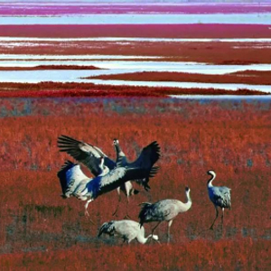 过去数十年来,受围海养殖、向海索地的大开发活动影响,锦州市滨海湿地面积大幅萎缩,导致潮沟淤塞,水质恶化,滨海湿地生态功能退化,生物多样性锐减,生态系统服务功能逐步丧失。2022年,锦州市启动海洋生态保护修复工程,以重建“河-海-湿地”生态循环路径为核心,清退养殖池1181公顷,疏通潮沟14.1千米,恢复盐沼植被1597公顷。依据本地水文条件,优选本土耐盐植被碱蓬草、芦苇等,通过地形整理与潮汐模拟,促进盐沼植被的自然演替。潮沟疏通后,海水重新涌入湿地,重新激活了碱蓬草的生长,火红的“地毯”再次铺满海岸。