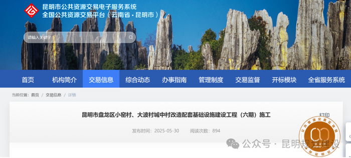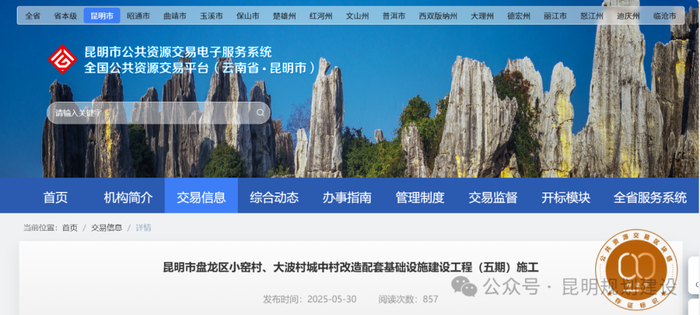 昆明市公共资源交易平台发布“昆明市盘龙区小窑村、大波村城中村改造配套基础设施建设工程(五期)和(六期)施工”拟招标计划表,计划表显示,项目预计本月发布招标公告。