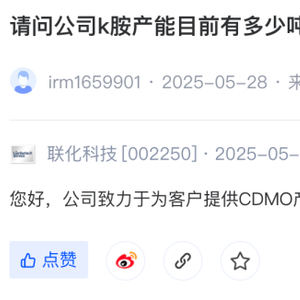 不过,联化科技并没有直接回应公司k胺的具体生产量,只是强调“公司致力于为客户提供CDMO产品,以中间体和高级中间体为主,具体产品产能不便披露”。