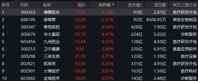 6月9日,医疗板块反弹,CXO概念涨幅居前,博腾股份涨超6%,泰格医药、九洲药业涨超4%。医疗大权重龙头股同步活跃,迈瑞医疗、药明康德、爱美客齐涨逾1%。