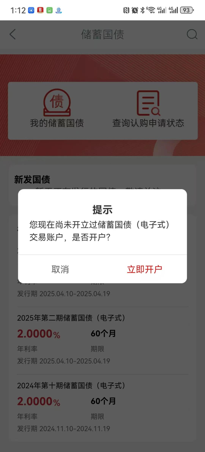当然,购买电子式国债,需要提前在手机银行上开户。