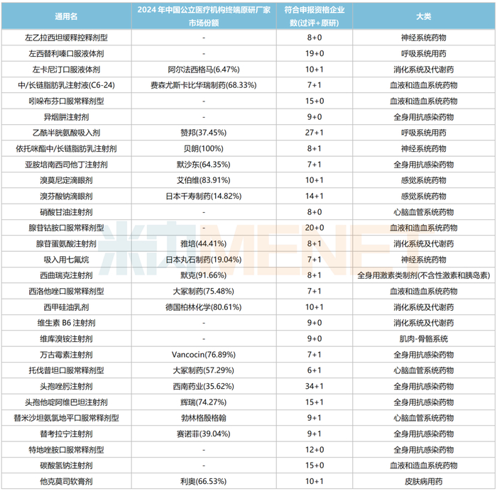 来源:米内网中国公立医疗机构药品终端竞争格局