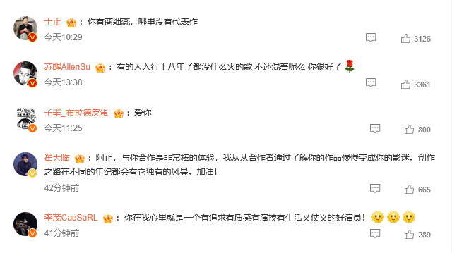 随后,导演于正、演员翟天临、歌手李茂、苏醒在评论区留言,力挺尹正。