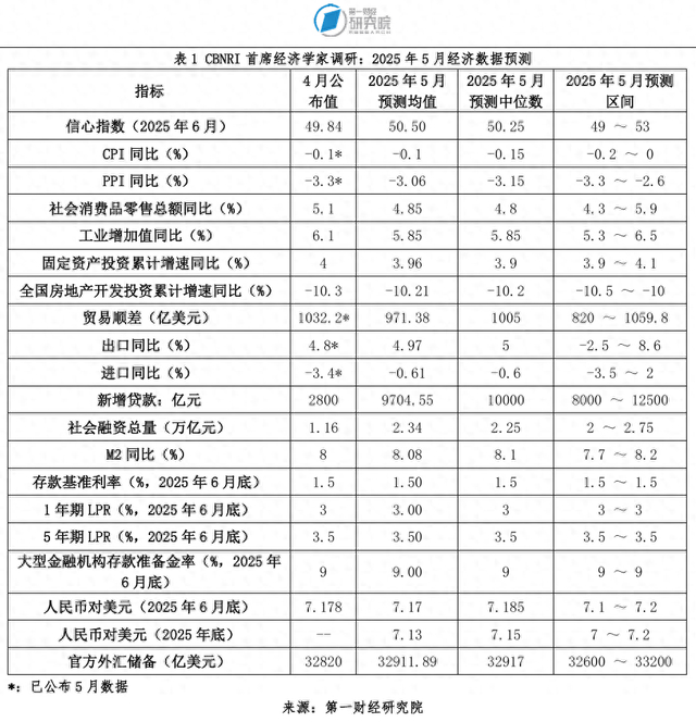 2025年4月最佳预测经济学家5月预测(房地产开发投资累计增速同比):