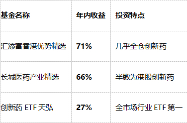 基金:创新药ETF天弘(517380):独家跟踪恒生沪深港创新药精选50指数,年内涨幅27%。