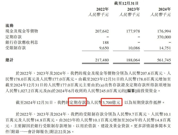最后,周六福还背负着对赌压力。若未能在规定时间内成功IPO,周六福将面临回购前投资者所持股份的不利局面,这或是其执着于上市的另一重要原因。据媒体此前披露,2023年11月至2024年1月,李伟柱等已与相关股东签订股权转让协议,回购了相关股东当时持有的绝大部分股权,总计耗资约1.64亿元。其着急情绪,也能从招股书中直观感受到:截至2024年12月31日,周六福的定期存款共计3.7亿元,但其却在招股书里写成了“3700亿元”,出现了低级错误。