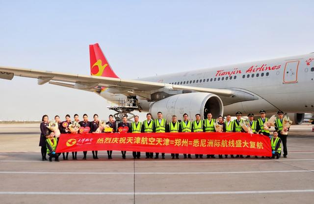 2023年3月25日,天津航空复航首条洲际定期航线,当日,搭载150多名旅客的天津航空A330客机从天津滨海国际机场起飞前往澳大利亚悉尼。(新华社记者 王晖 摄)